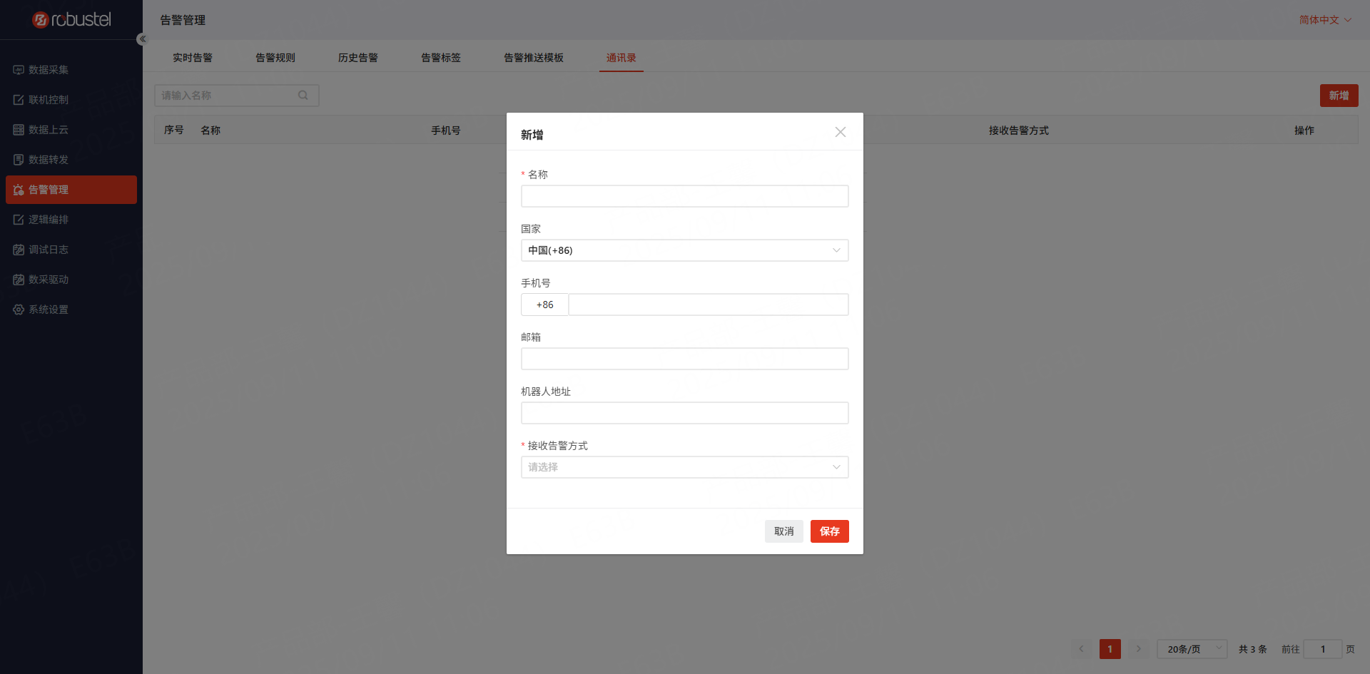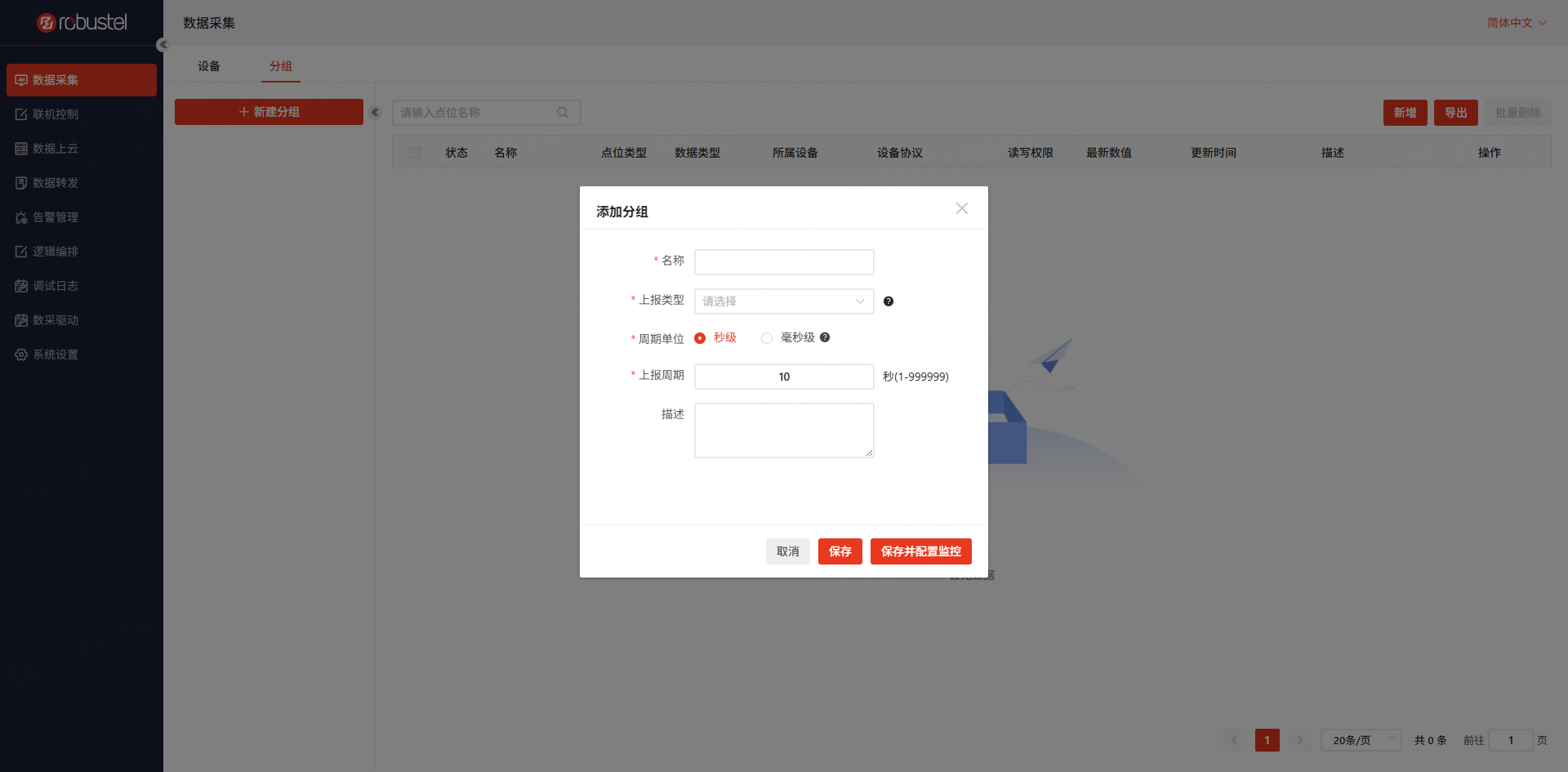 在数据采集页面点击新建分组,弹出如下对话框: