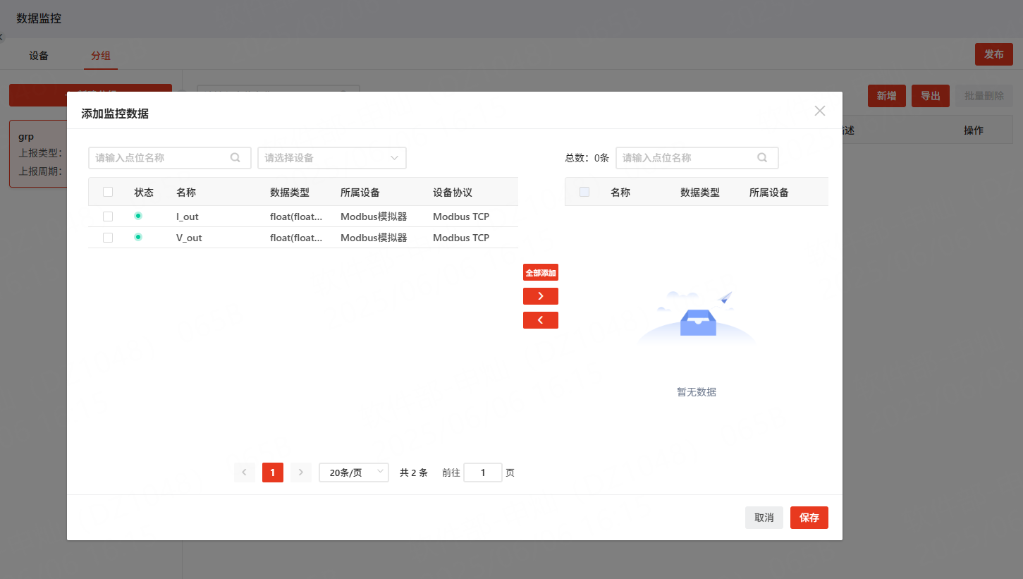 这里选中所有的点表,点击“>”按钮,可将选中的点表添加到当前分组下。点击确定后即可完成操作,无需进行发布。