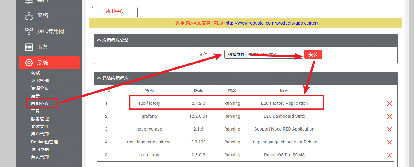 如果您的网关设备已经预置了E2C Factory应用,可跳过此步骤