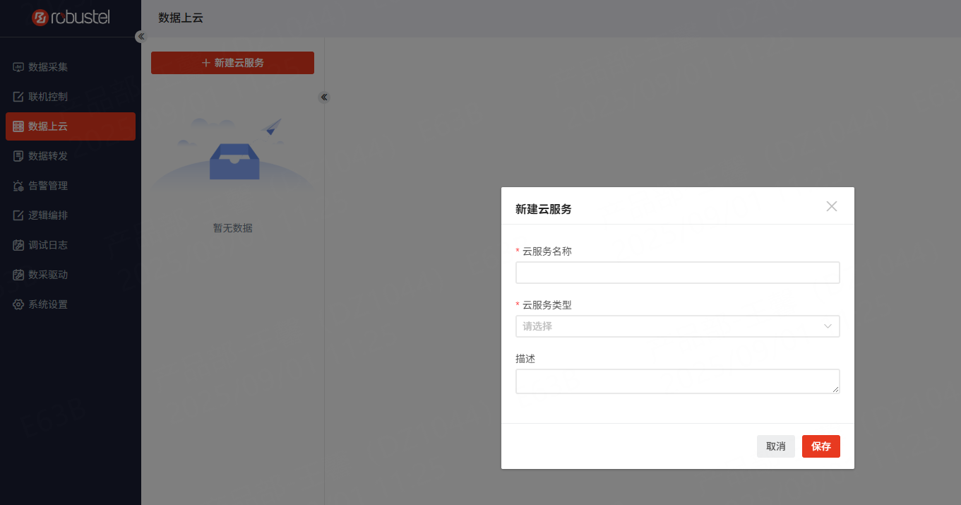选择数据上云菜单项,点击新建云服务