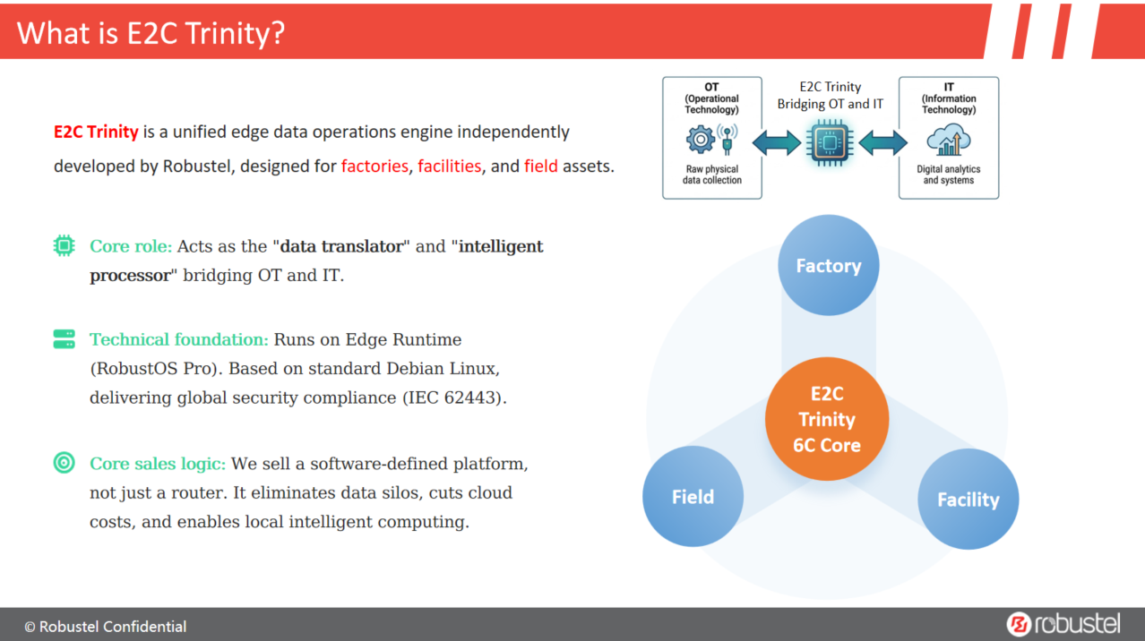 E2C Trinity 是专为工业 4.0、智慧建筑及能源管理设计的边缘侧中间件(Edge Middleware)。它在 OT 资产与 IT 应用之间构建了一个高可靠、可扩展的数字底座,实现从物理设备到业务决策的全链路数据闭环 。