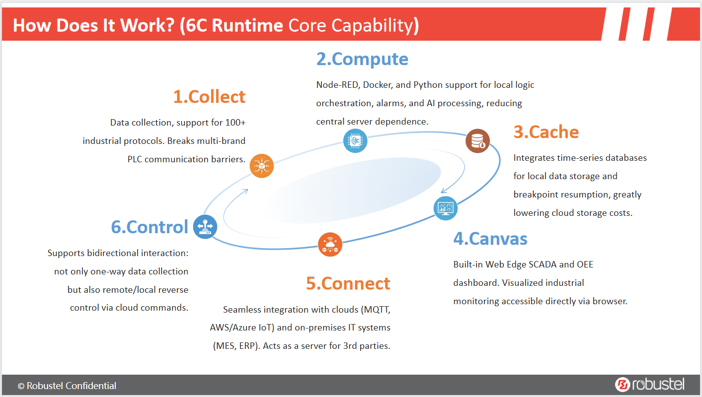 E2C Trinity covers the entire process from bottom-layer data acquisition to top-layer cloud integration through its unique 6C Edge Computing Runtime: