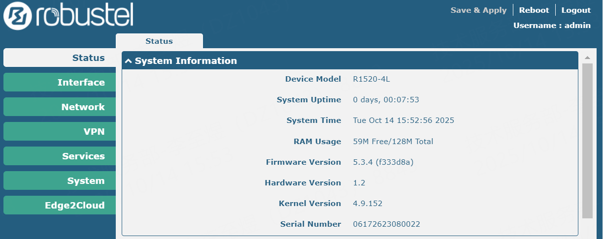 You will now see the Robustel Web Management Interface login page, as shown in the screenshot below.