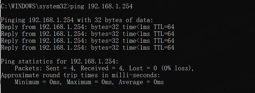 ping 192.168.1.254 (using the new IP you added). - Check the Result: If you receive replies from the router, the secondary IP address has been added successfully, and the router is now accessible on that IP.