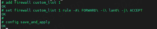 A2: Use the del firewall custom_list <list_id> command, replacing <list_id> with the index number of the rule you want to remove. For example, to delete the rule we created: