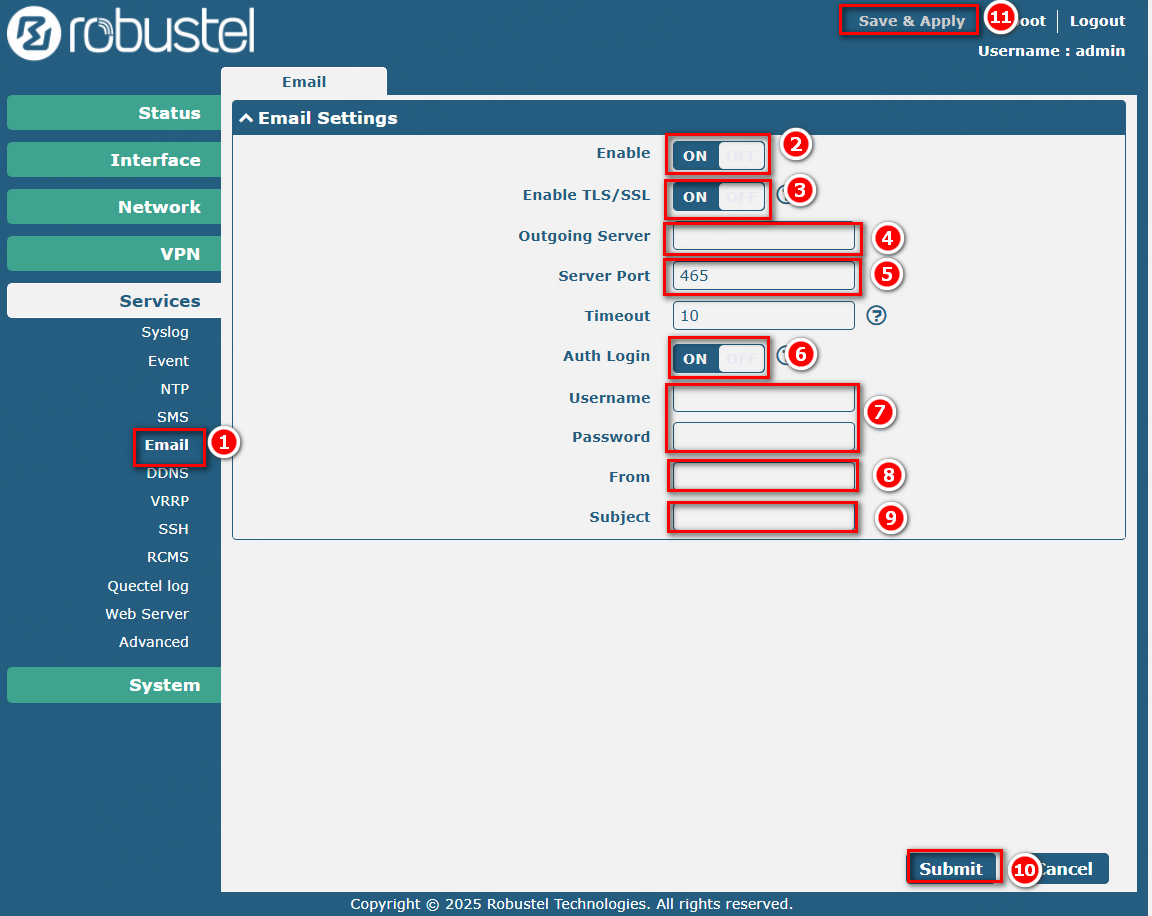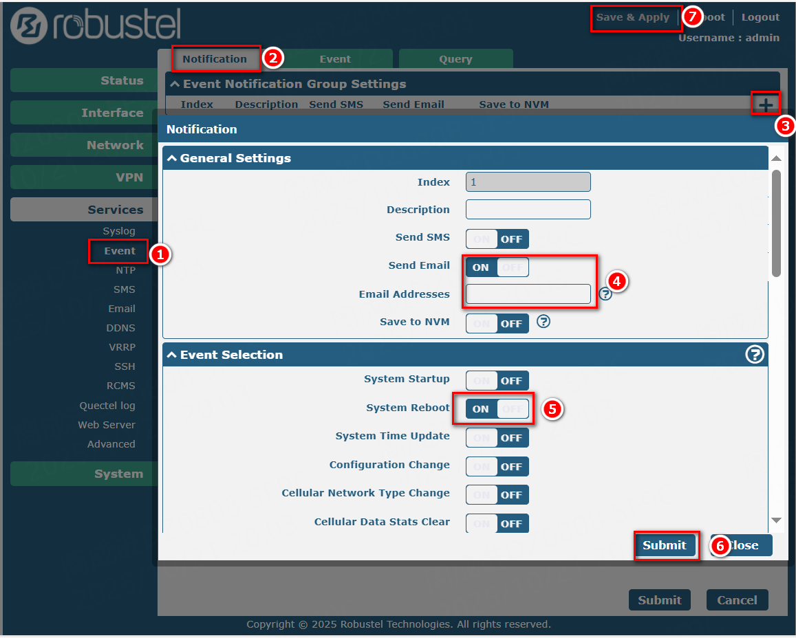 When managing network devices, it's crucial to be aware of important events, such as system reboots, connection failures, or configuration changes. This guide provides a step-by-step process for configuring a Robustel router running RobustOS to automatically send email notifications when specific system events occur. This ensures that administrators are promptly informed of the router's status without needing to log in to the web interface constantly.