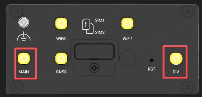 - Attach cellular antennas to the Main and Aux ports.