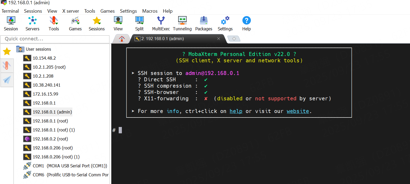- Open your SSH client, enter the gateway's IP address, and initiate a connection.