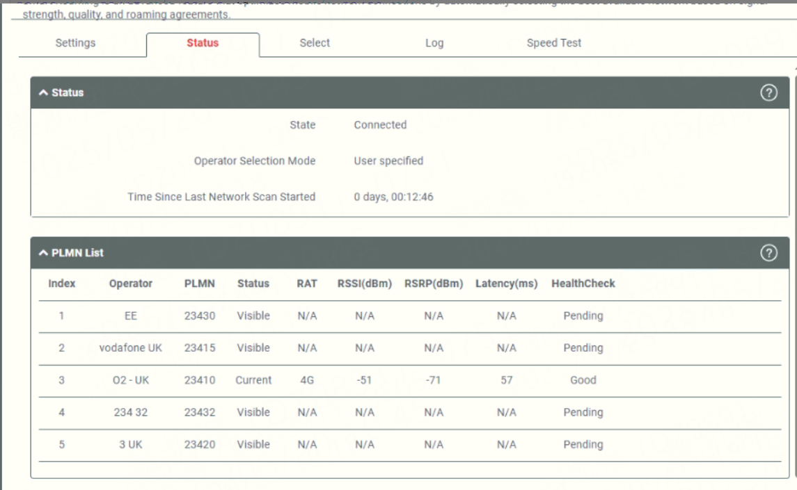 - Success Indicator: The "Operator" field in the status should now display the name of the carrier you manually selected (e.g., "O2 UK"). The interface should show a "Connected" status and be able to transmit data.