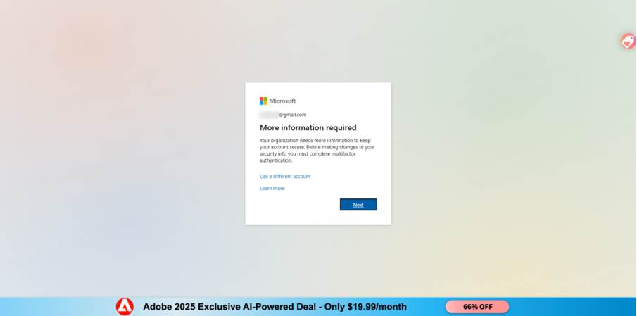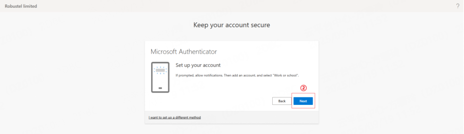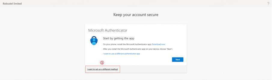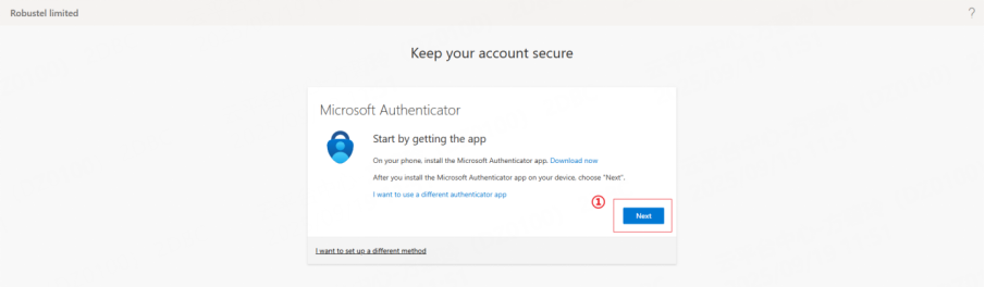 2. You will be automatically prompted to set up MFA. Click Next to start the setup.