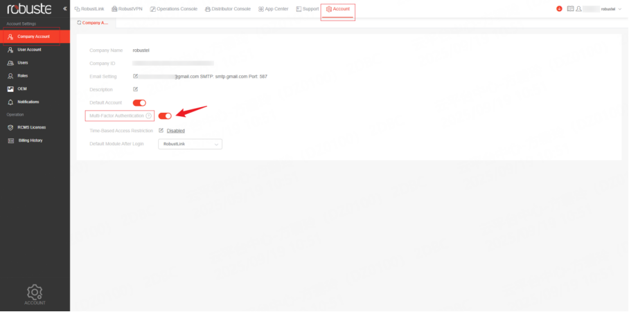 2. Navigate to Account → Company Account → Multi-Factor Authentication.