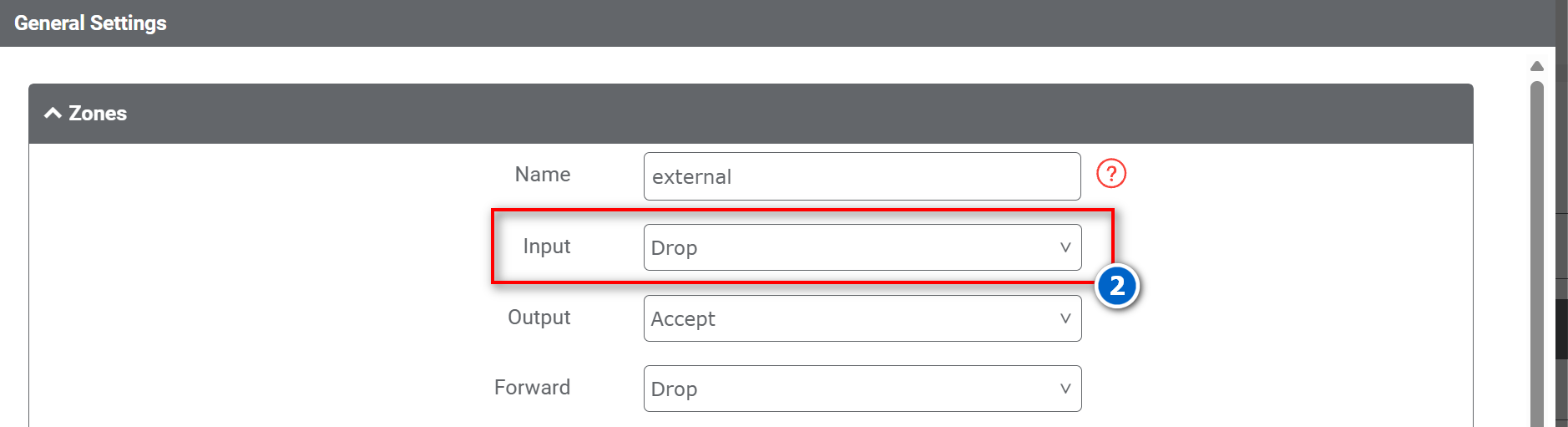 1. First, we must configure the device to drop all unsolicited traffic from the external (WWAN/WAN) network.