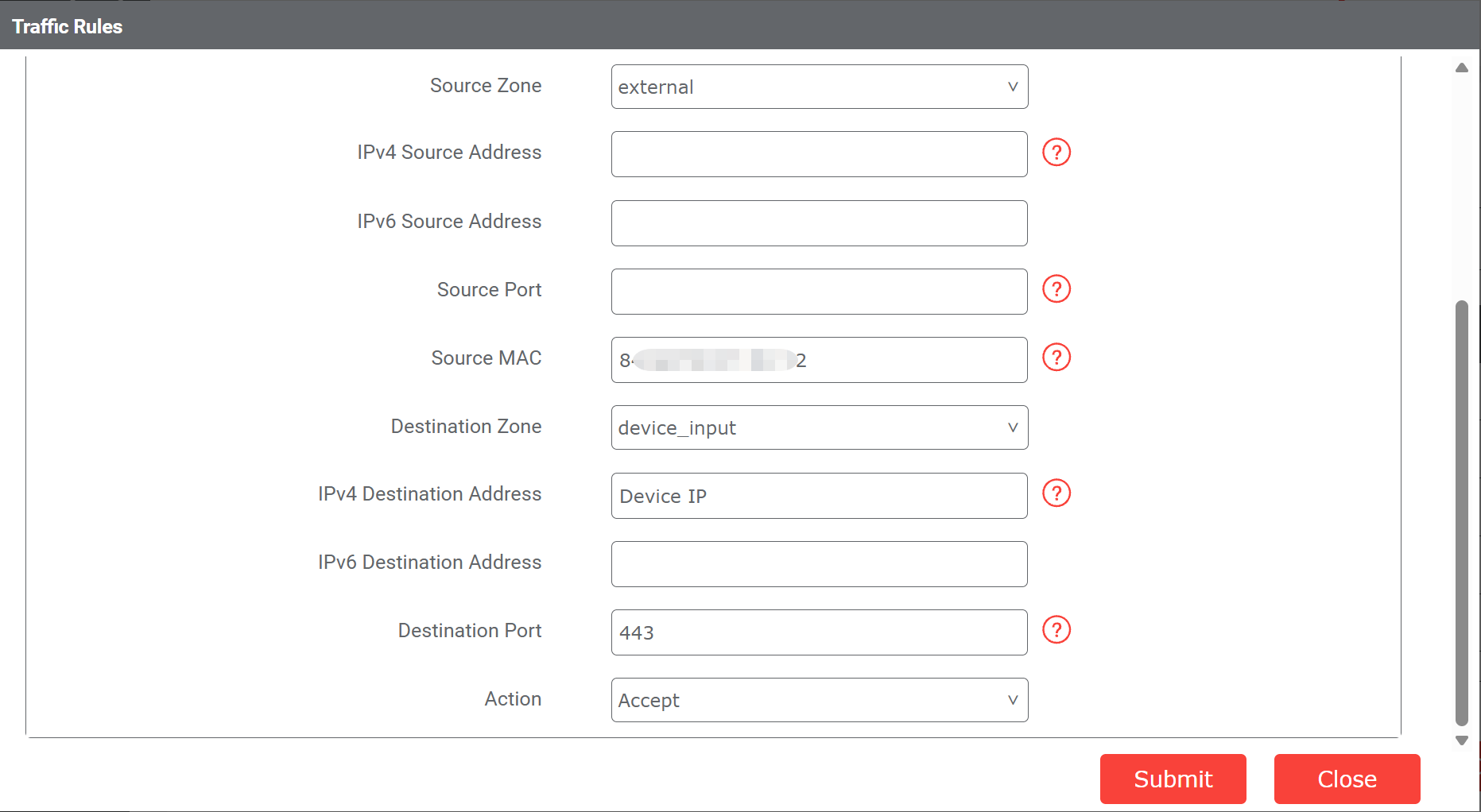 - Source MAC: Enter the MAC address of the public host (e.g., MAC-B).