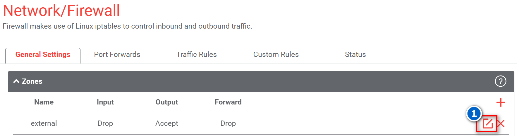 4. In the Zones section, find the external zone and click the Modify (pencil) icon.