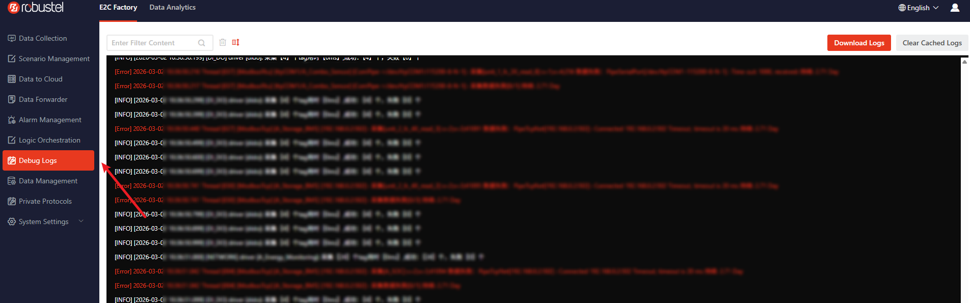 - Solution: Navigate to [Debug Logs] for real-time acquisition logs, or [System Settings] -> [System Logs] for underlying system runtime logs.