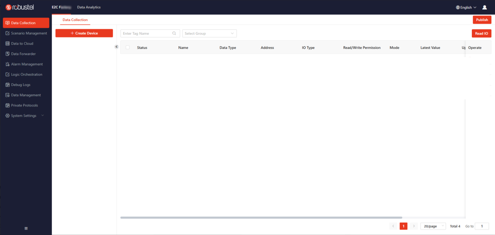 - Log into the gateway management page. Navigate to [Data Acquisition] to enter the E2C Trinity configuration page.