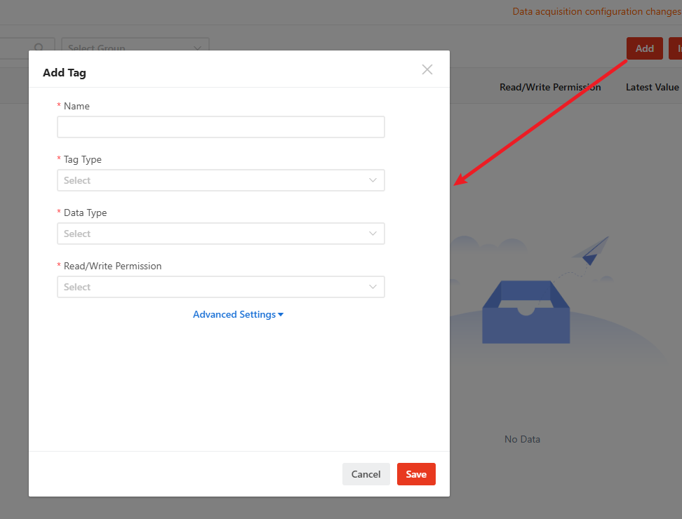 - Click "Add" to create a single data acquisition Tag. Fill in the tag information.