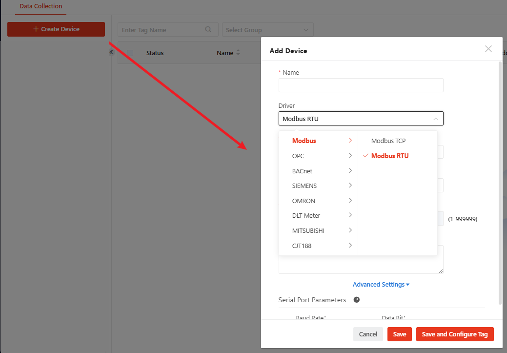 Select "Modbus RTU". |