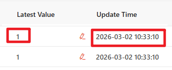 3. Test Writing: Click the edit icon in the "Latest Value" column, modify the value, and verify if the PLC accepts the change in the next polling cycle.
