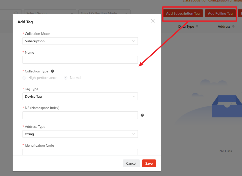 | Collection Mode | Select the mode for this specific tag (defaults based on device settings). | Subscription |